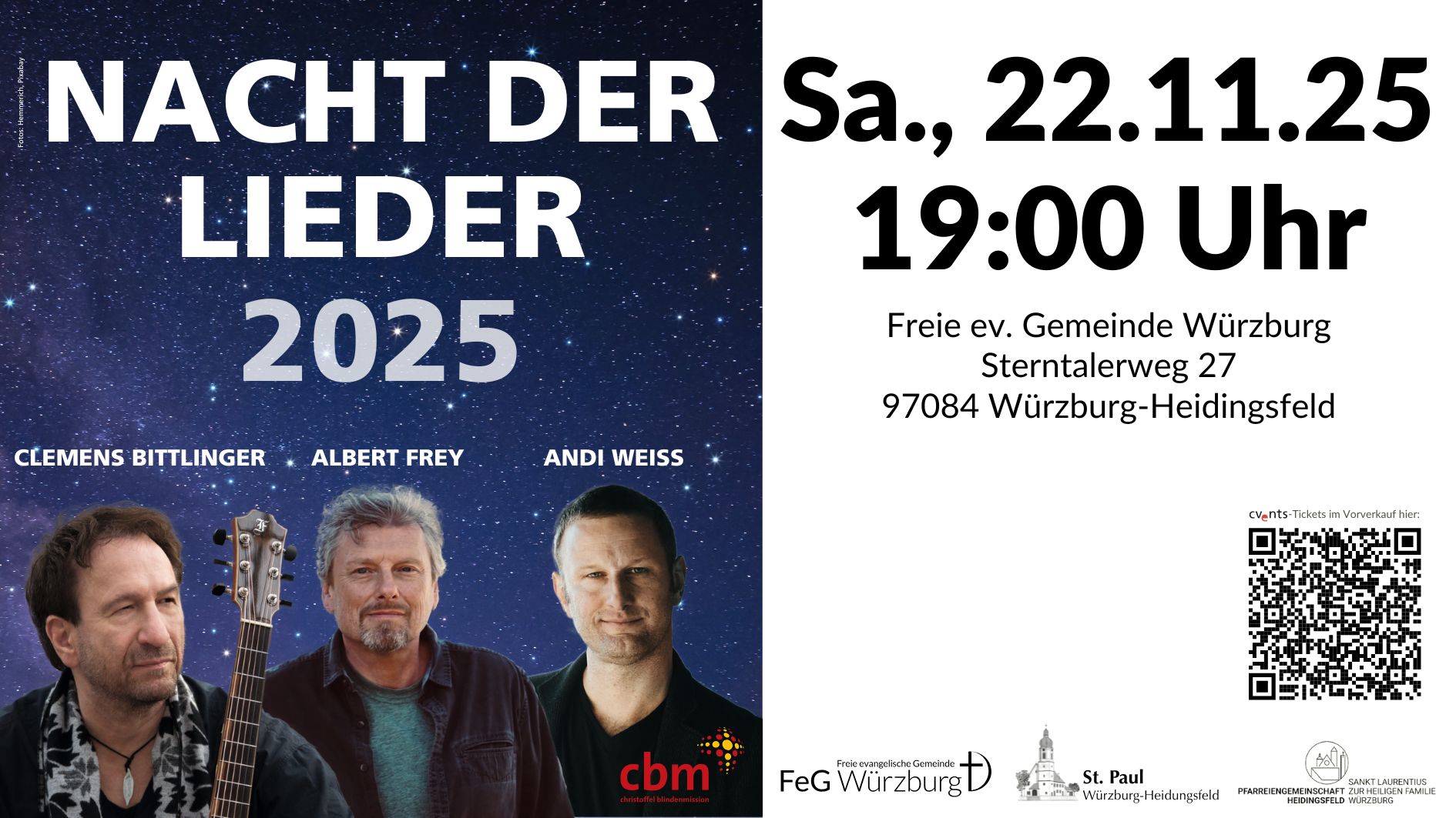 NACHT DER LIEDER mit Clemens Bittlinger, Albert Frey und Andi Weiss Seit vielen Jahren geht…