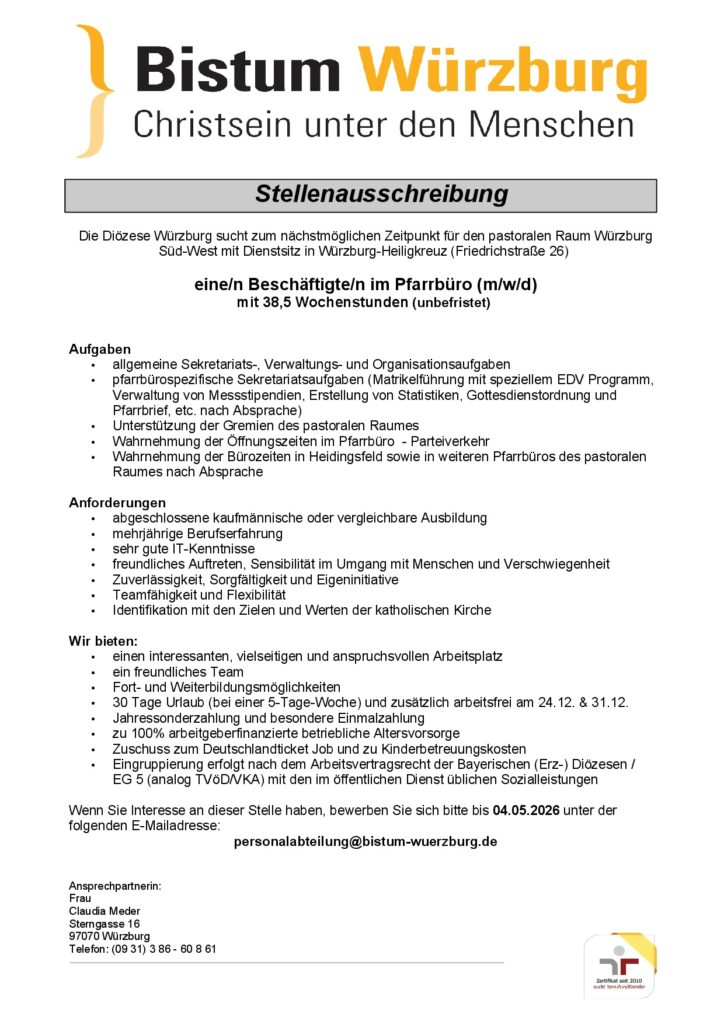 Am Karsamstag, 04. April 2026 findet in St. Laurentius die 2. Hätzfelder Kirchenwerkstatt als „Osterpfarrfest“…