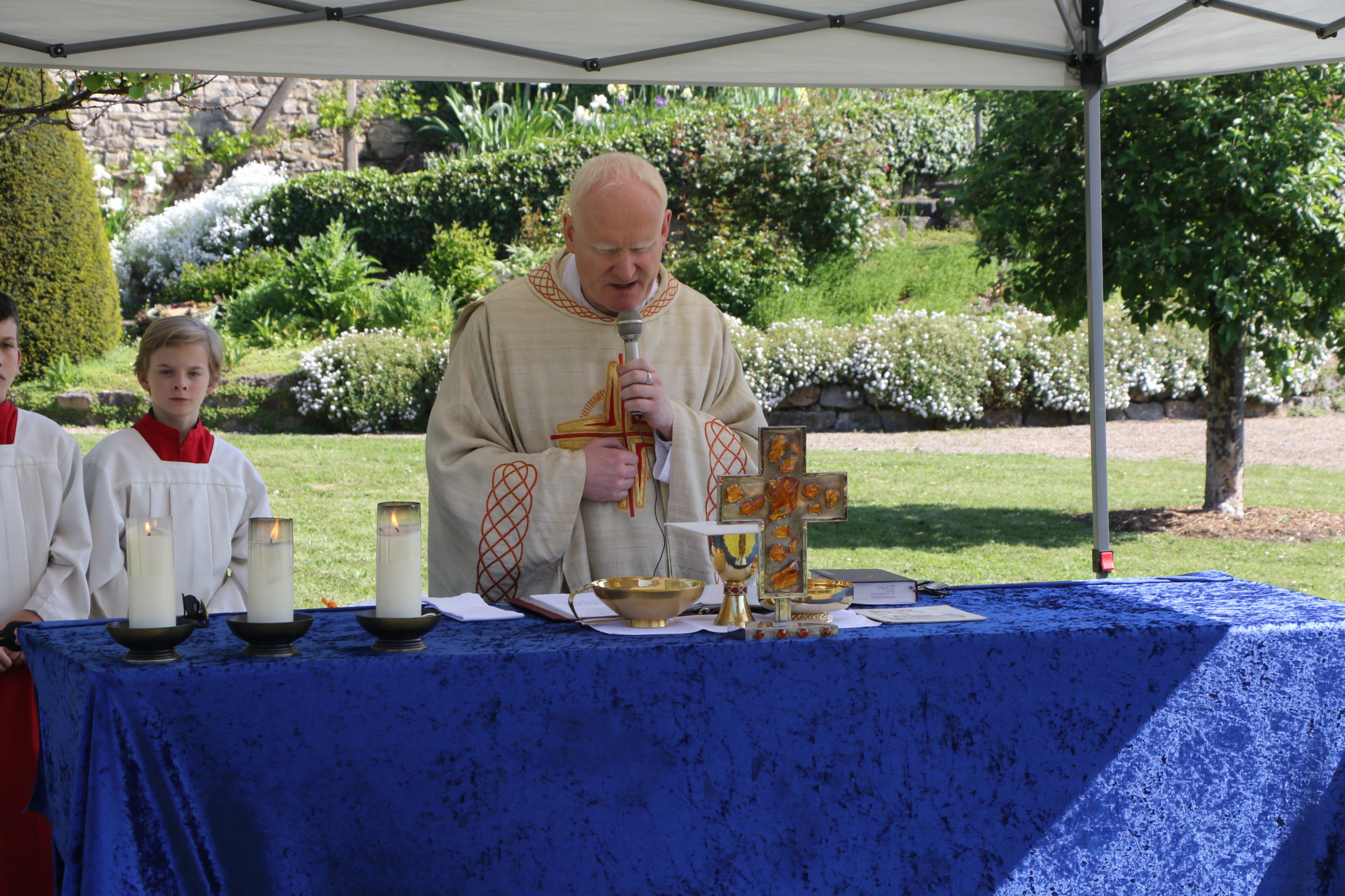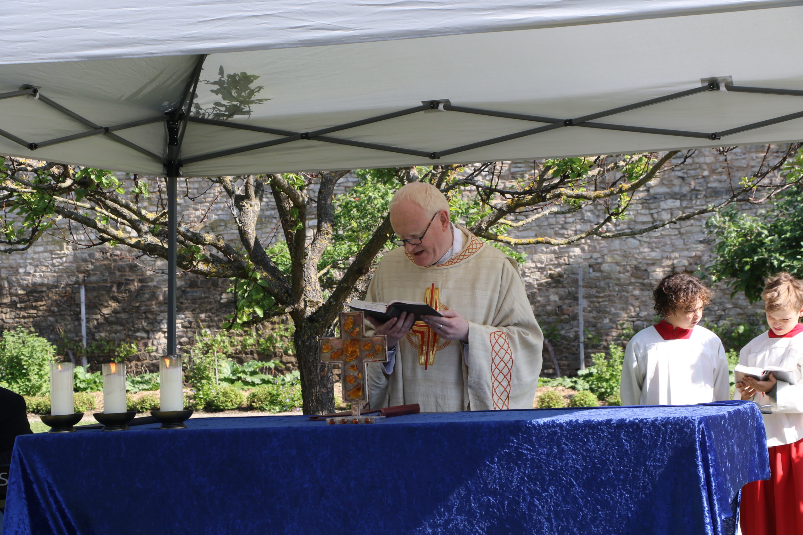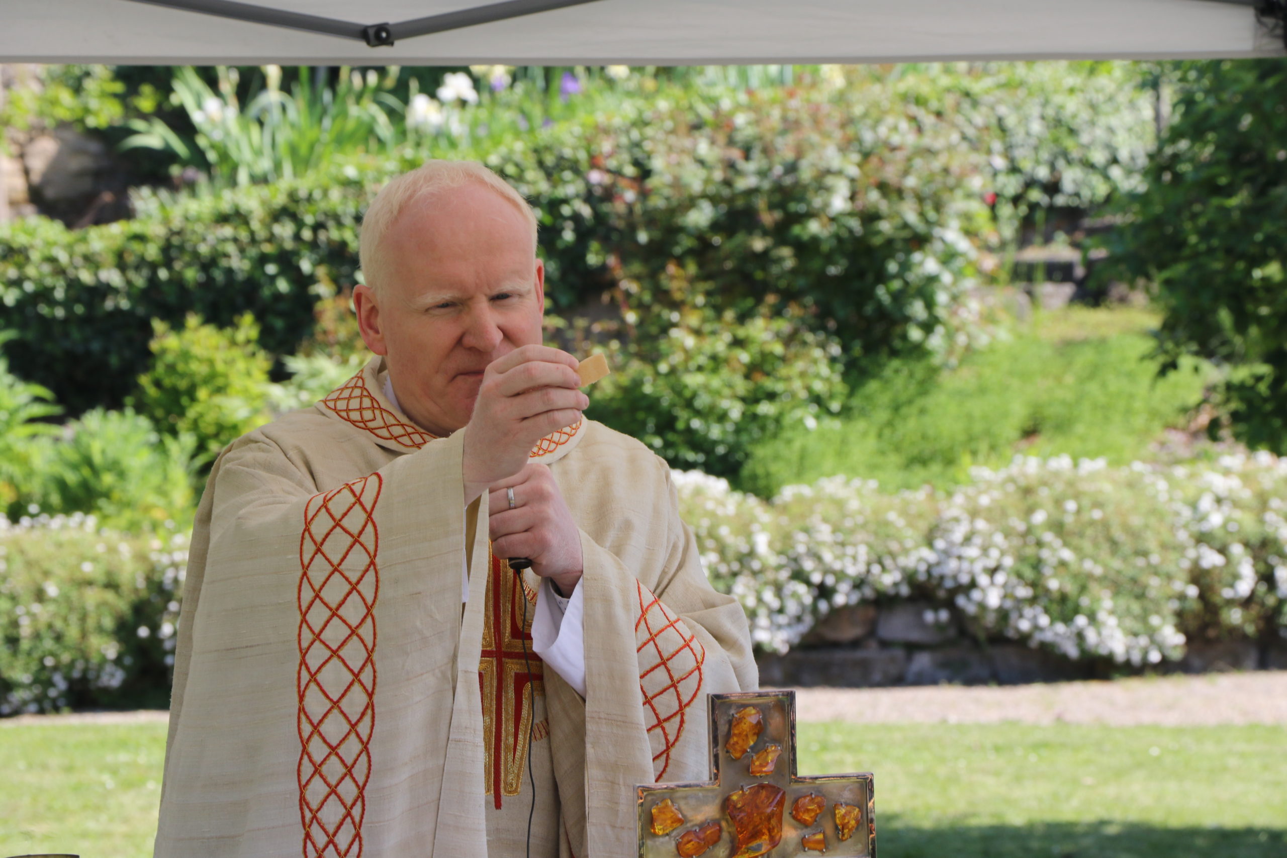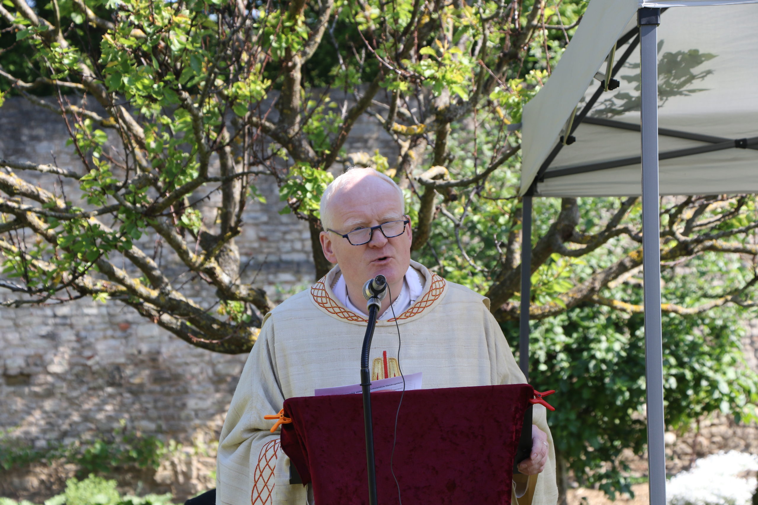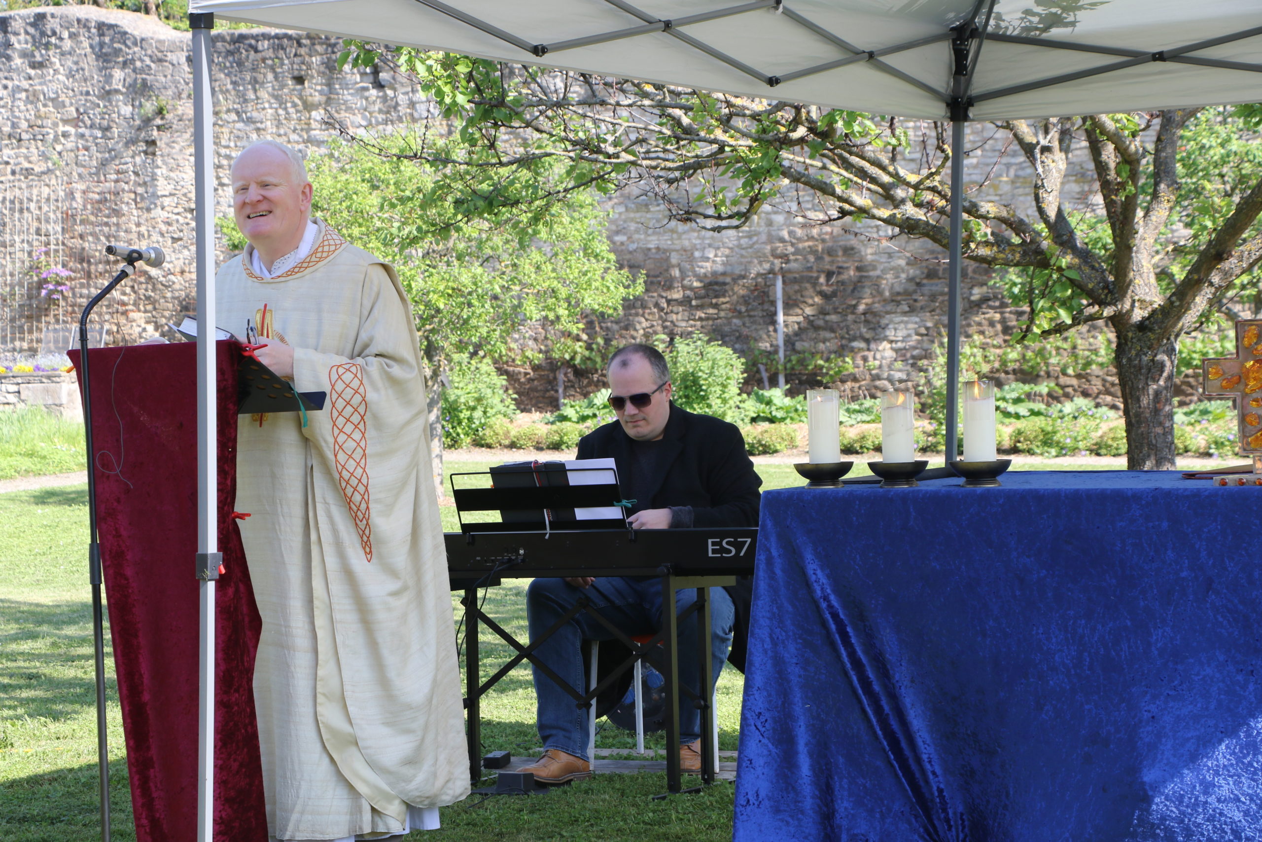 Wir sind dankbar, dass wir jedes Jahr den Gottesdienst im Garten der Schulschwestern feiern können – in diesem Jahr am Gedenktag der Ordensgründerin Marie Theresia Gerhardinger. In der freien Natur Gott loben und preisen, das ließen sich viele Gemeindemitglieder nicht entgehen. Und die Schwestern feierten auf den Balkonen mit.