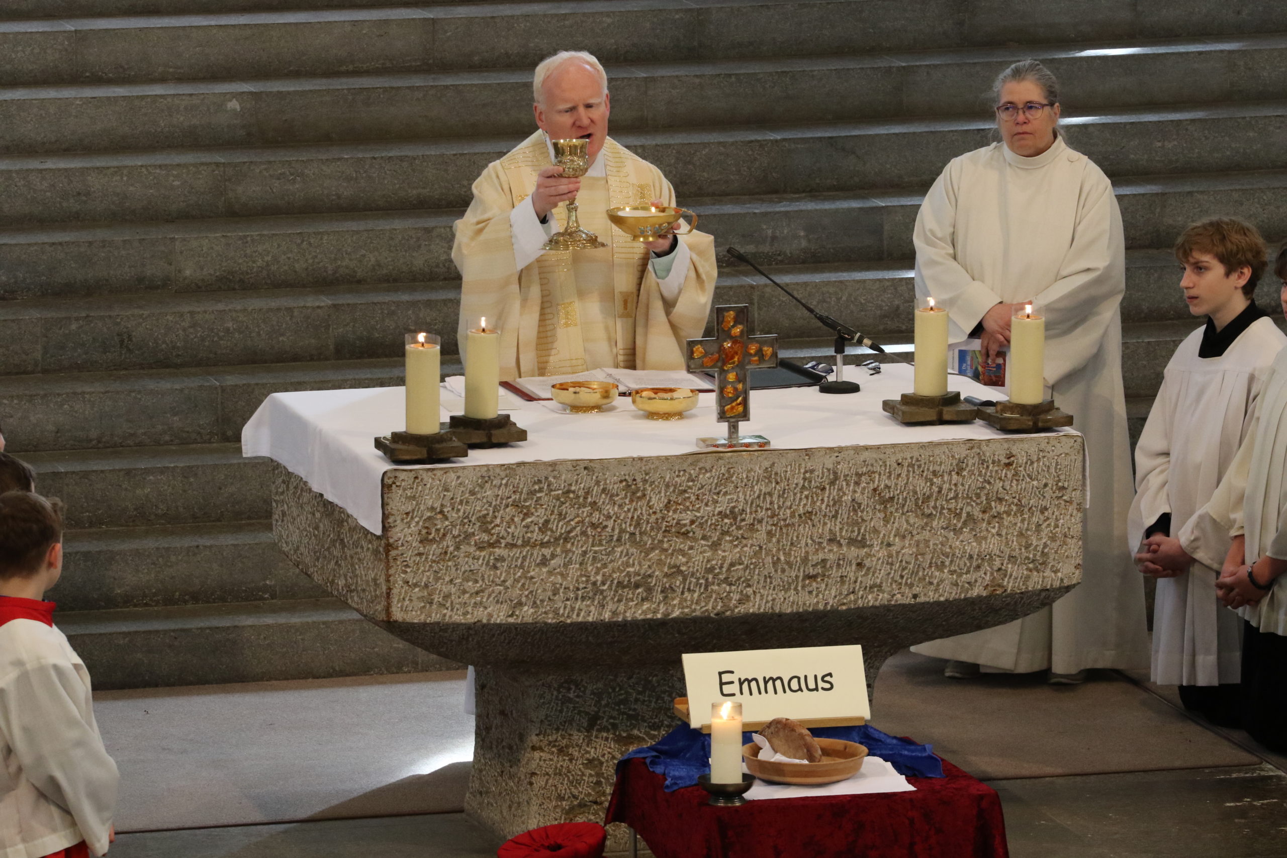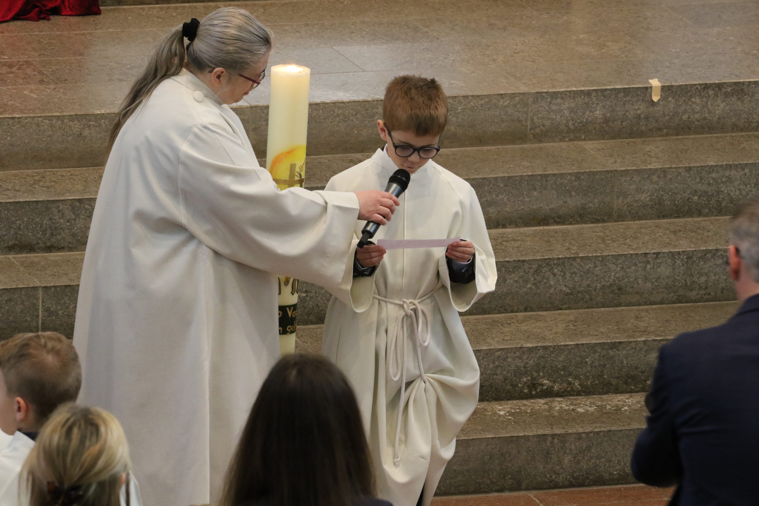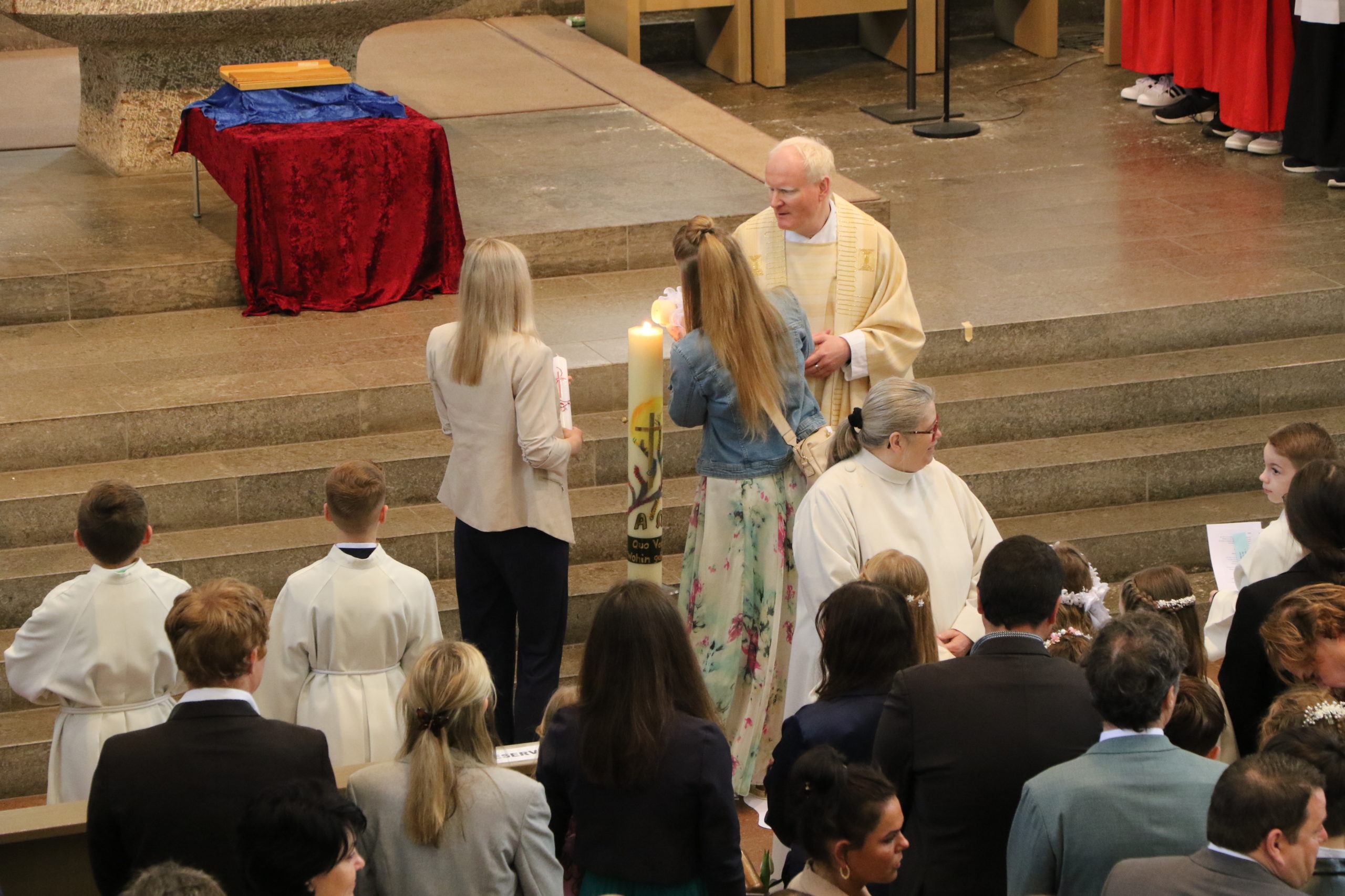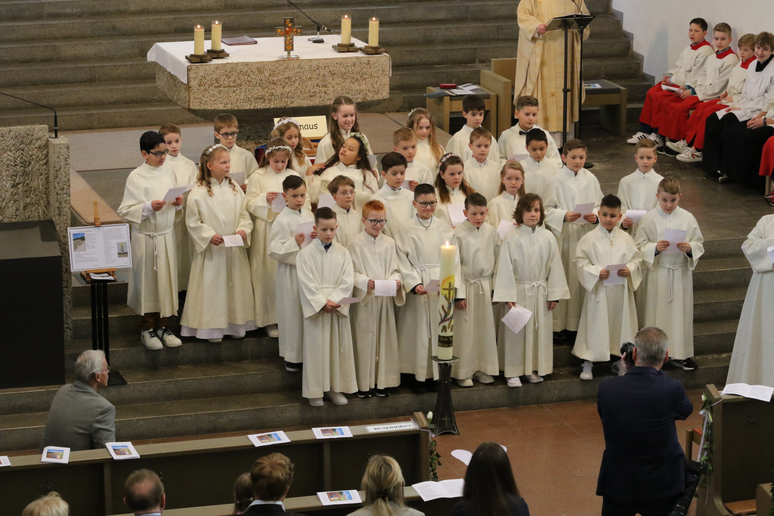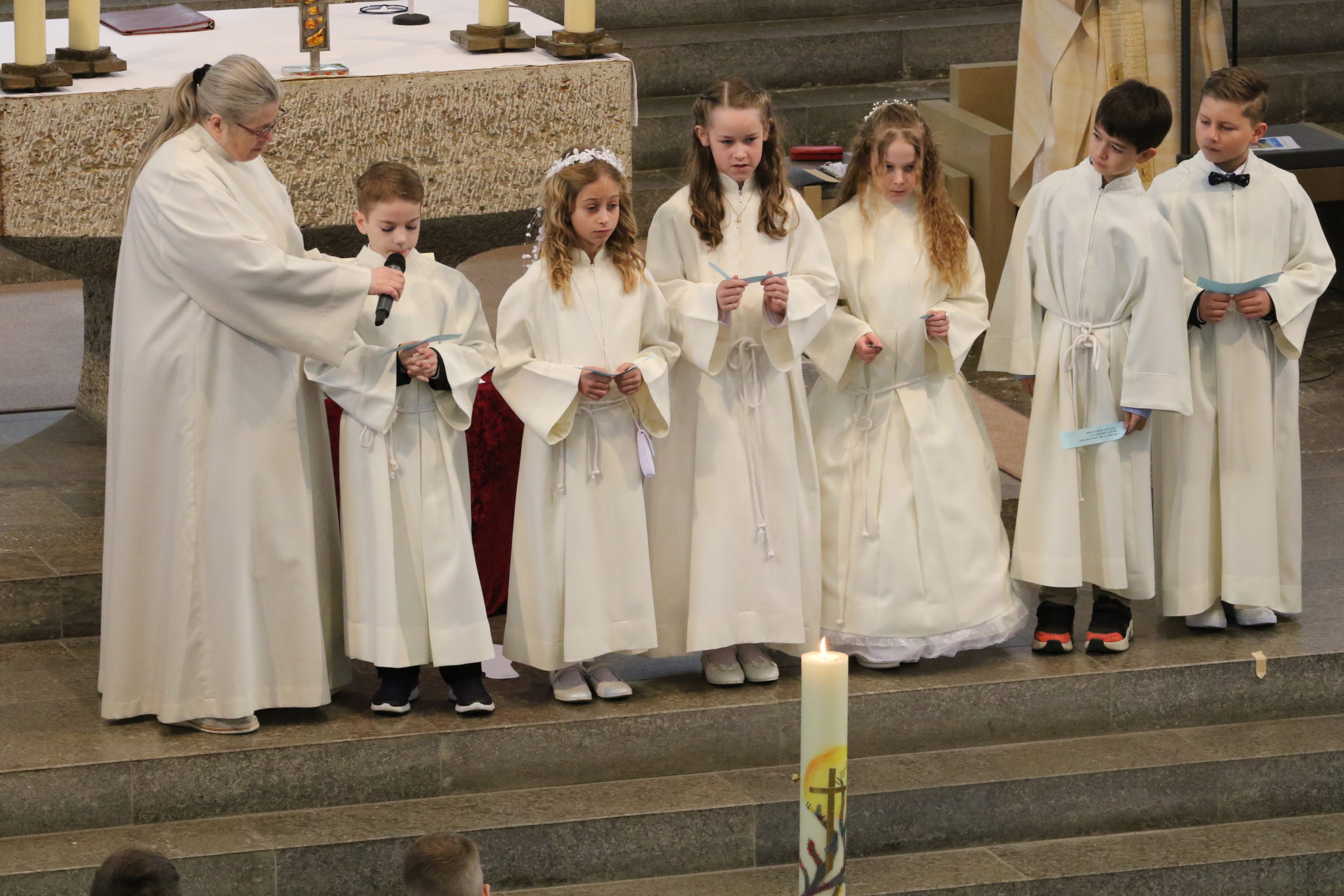 sowie Pfarrer Hösterey und Gemeindereferentin Hartmann zur Kirche gelaufen. Ebenso waren die Taufpaten dabei, die ihre Kinder in die Kirche begleitet haben und die Kerze an der Osterkerze entzündet haben. Musikalisch wurder der Gottesdienst vom chor.raum gestaltet. Herzlichen Dank allen, die mitgestaltet haben.