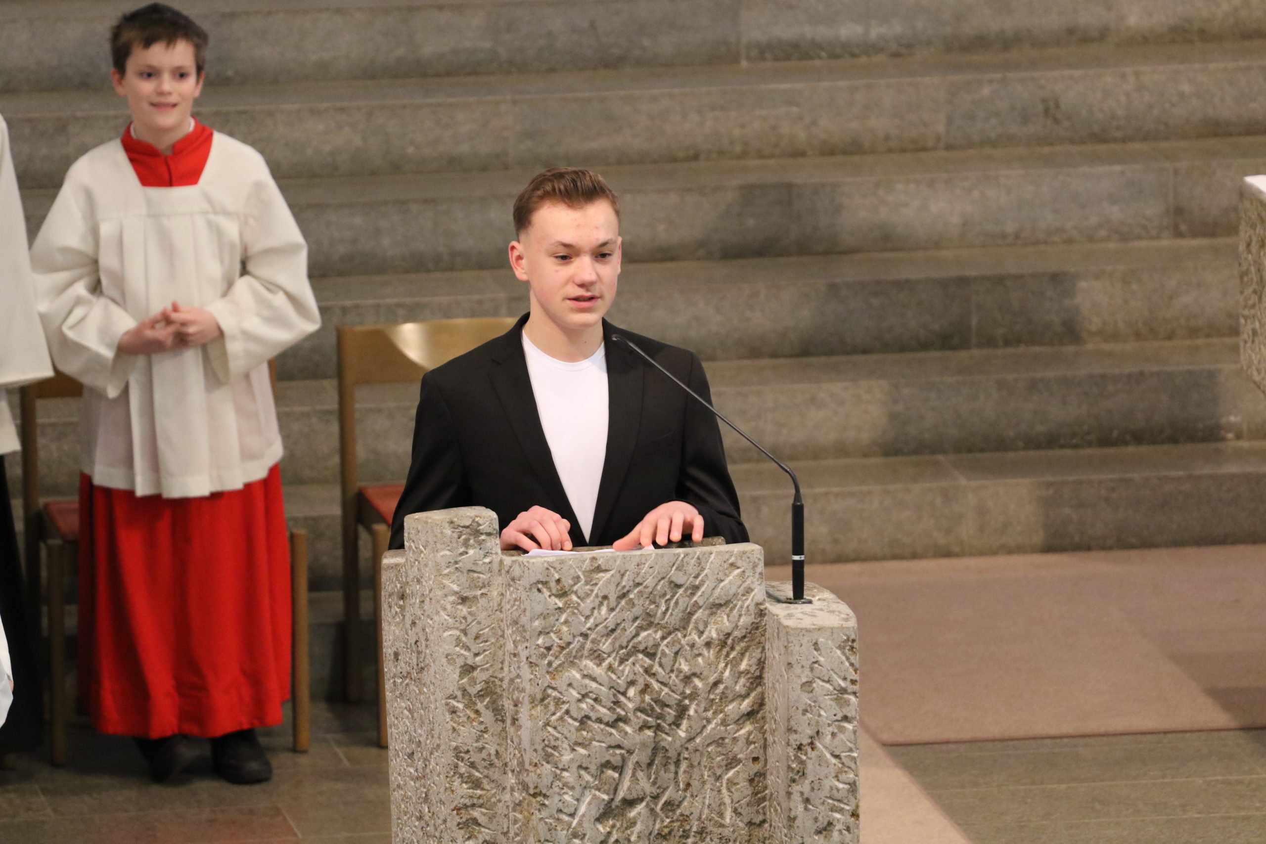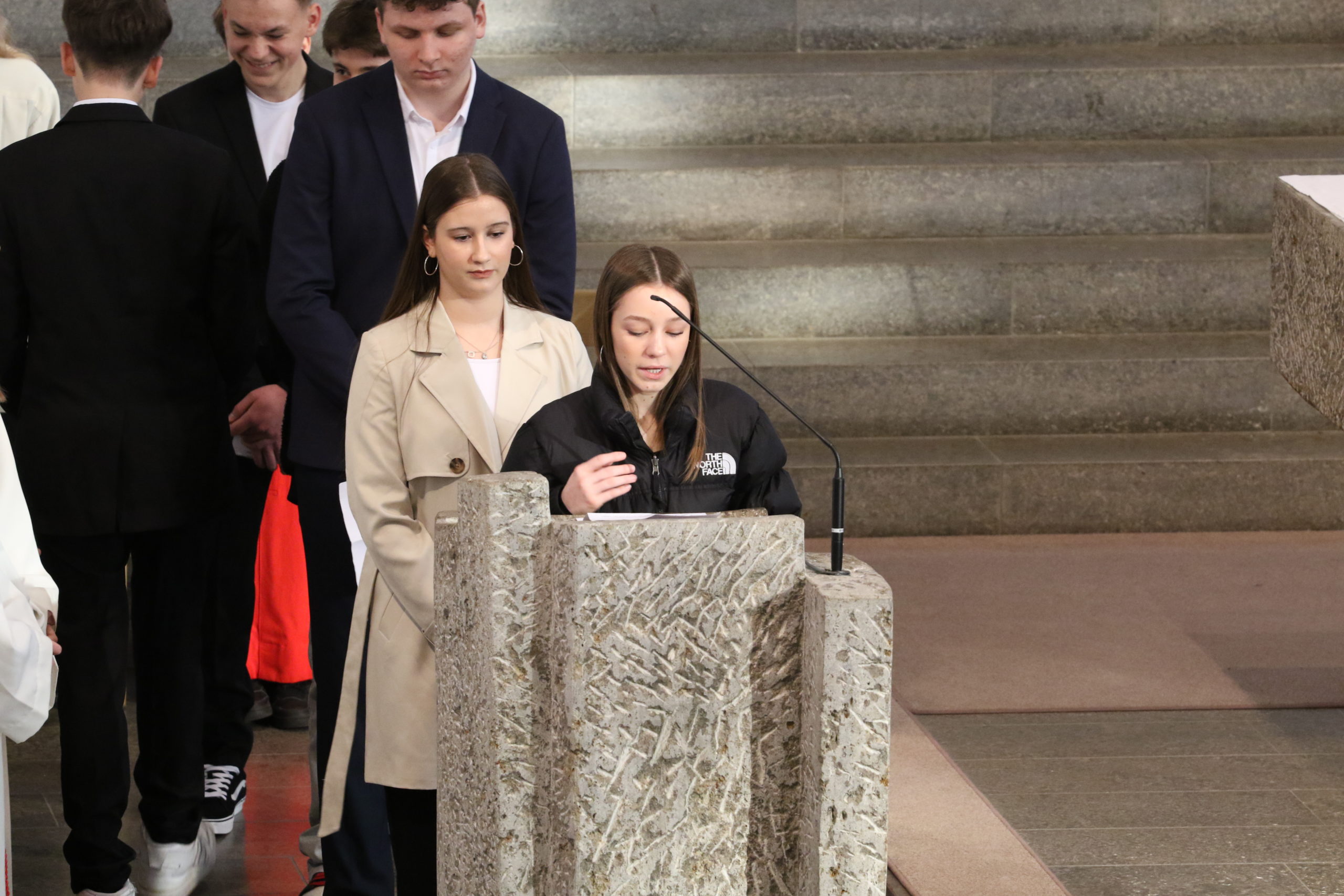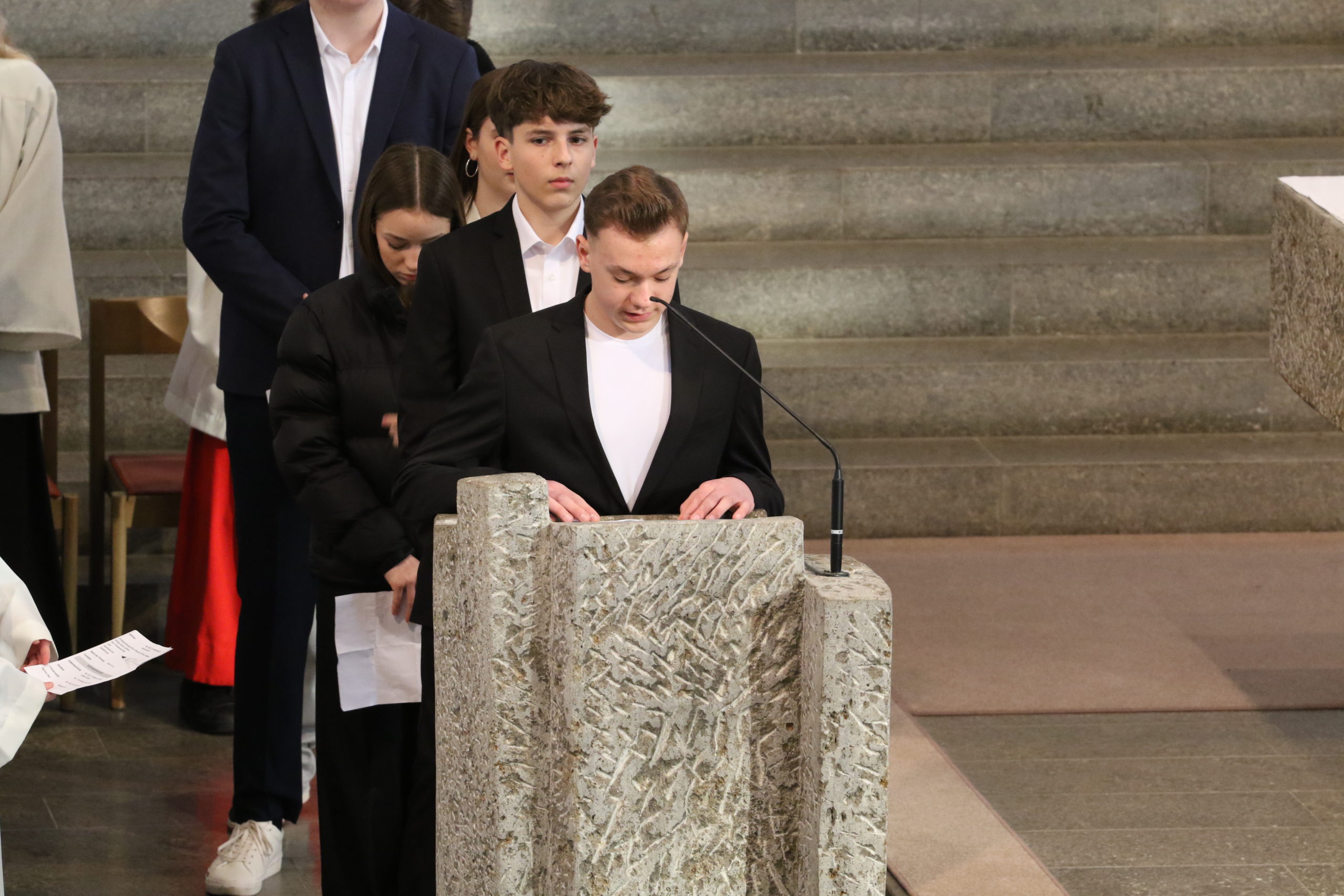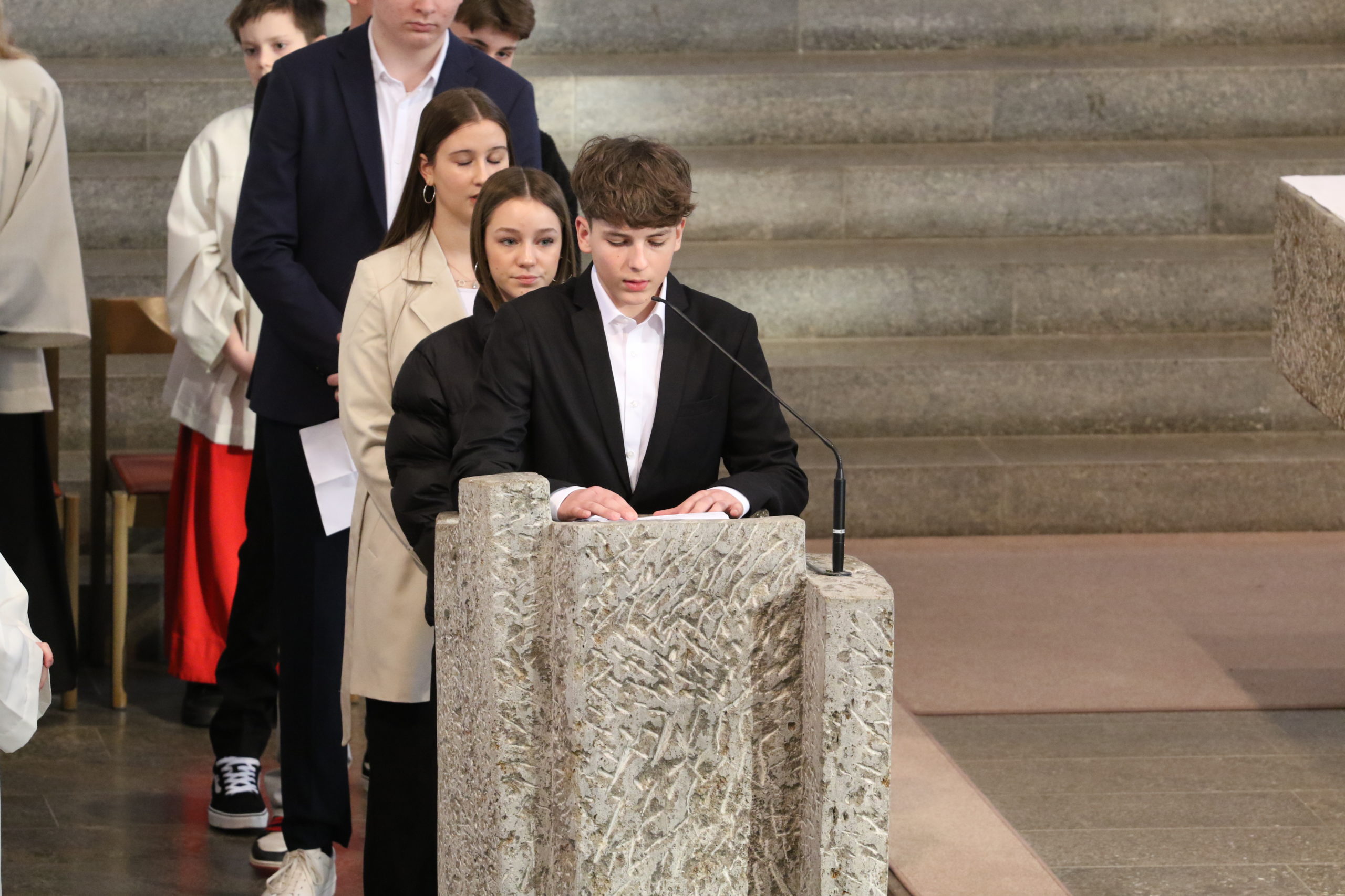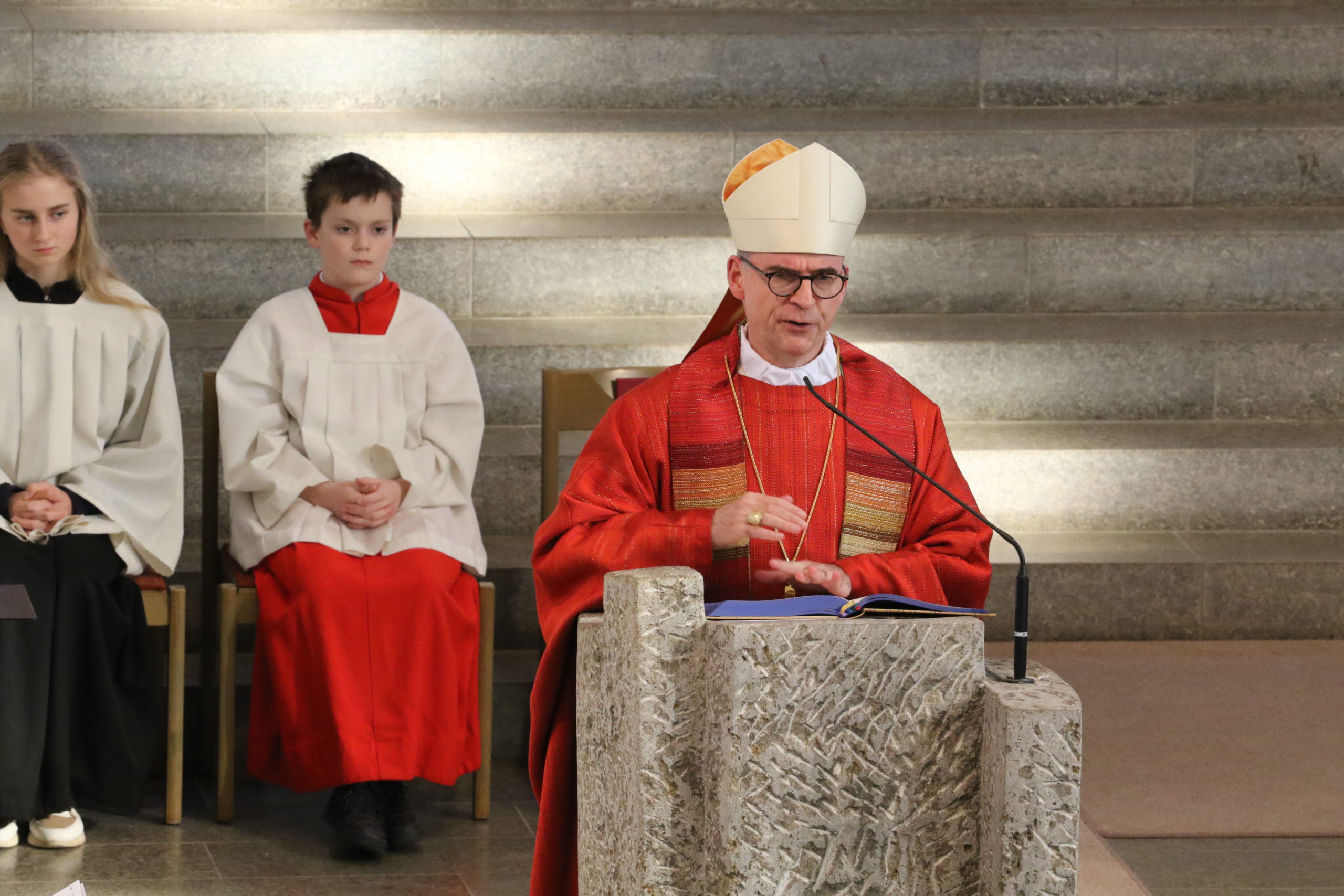 Die schwungvolle musikalische Gestaltung übernahm die Band Himmelwärts und ein gemischter Chor aus den drei Pfarreien unter der Leitung von Hendrik Frank. Ministranten aus allen drei Pfarreien haben den Gottesdienst festlich mitgestaltet. Zwei der Neugefirmten begrüßten und verabschiedeten gekonnt und soverän Bischof Jung und dankten ihm. Die Neugefirmten stellten verschiedene Ergebnisse aus der Vorbereitung vor.