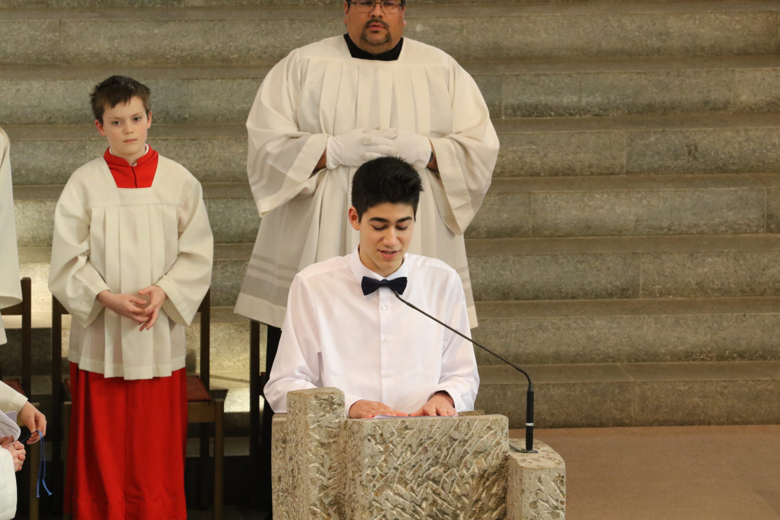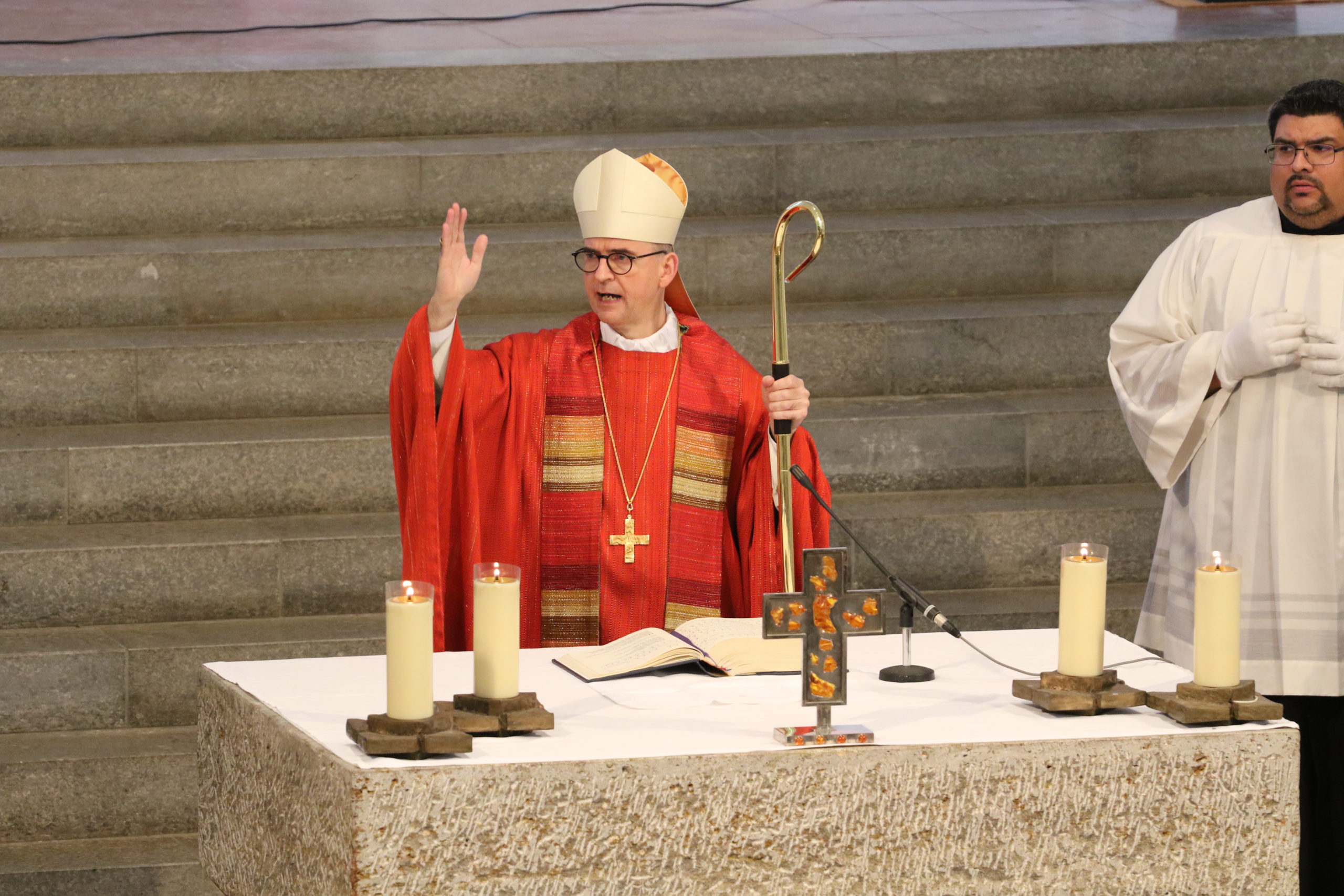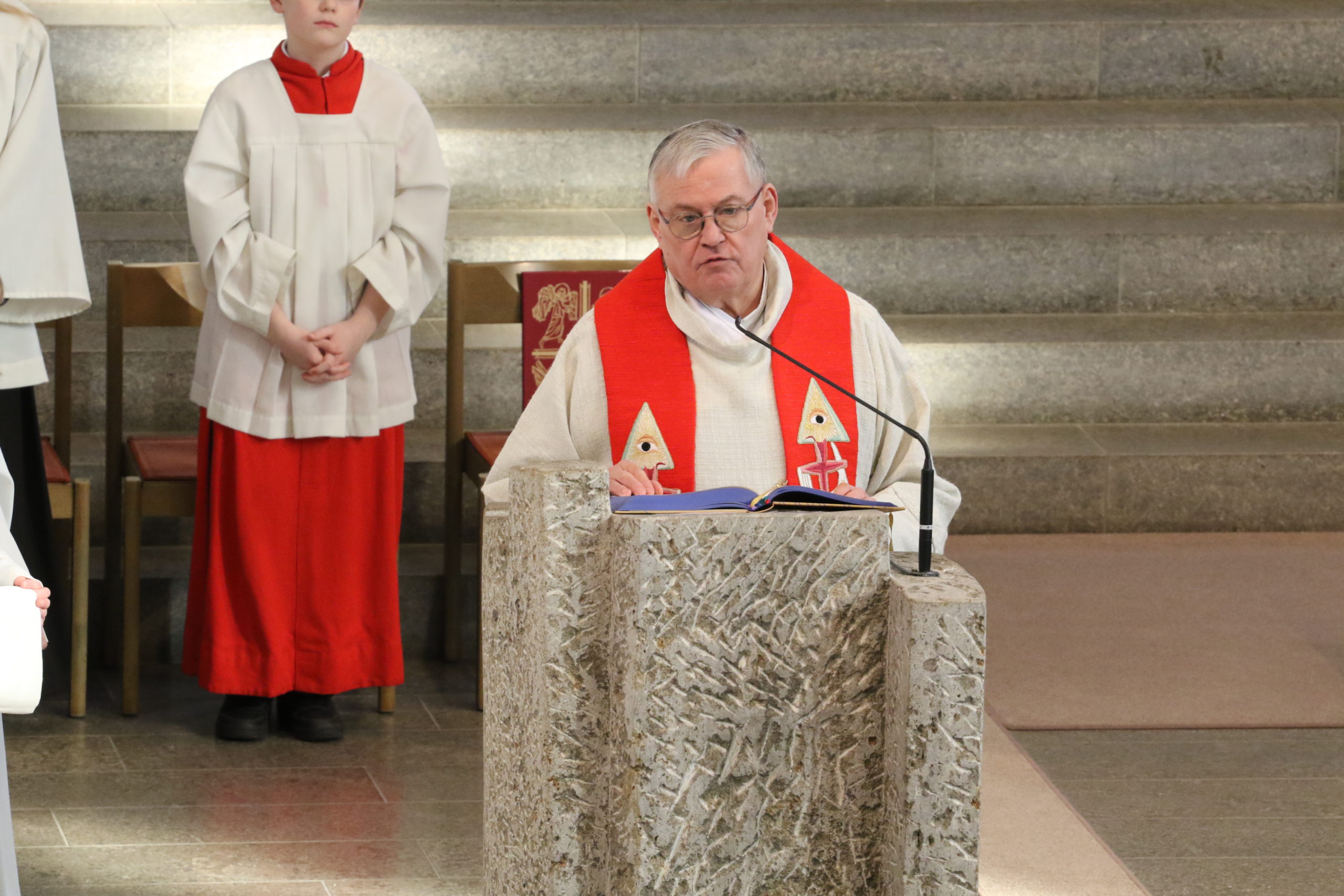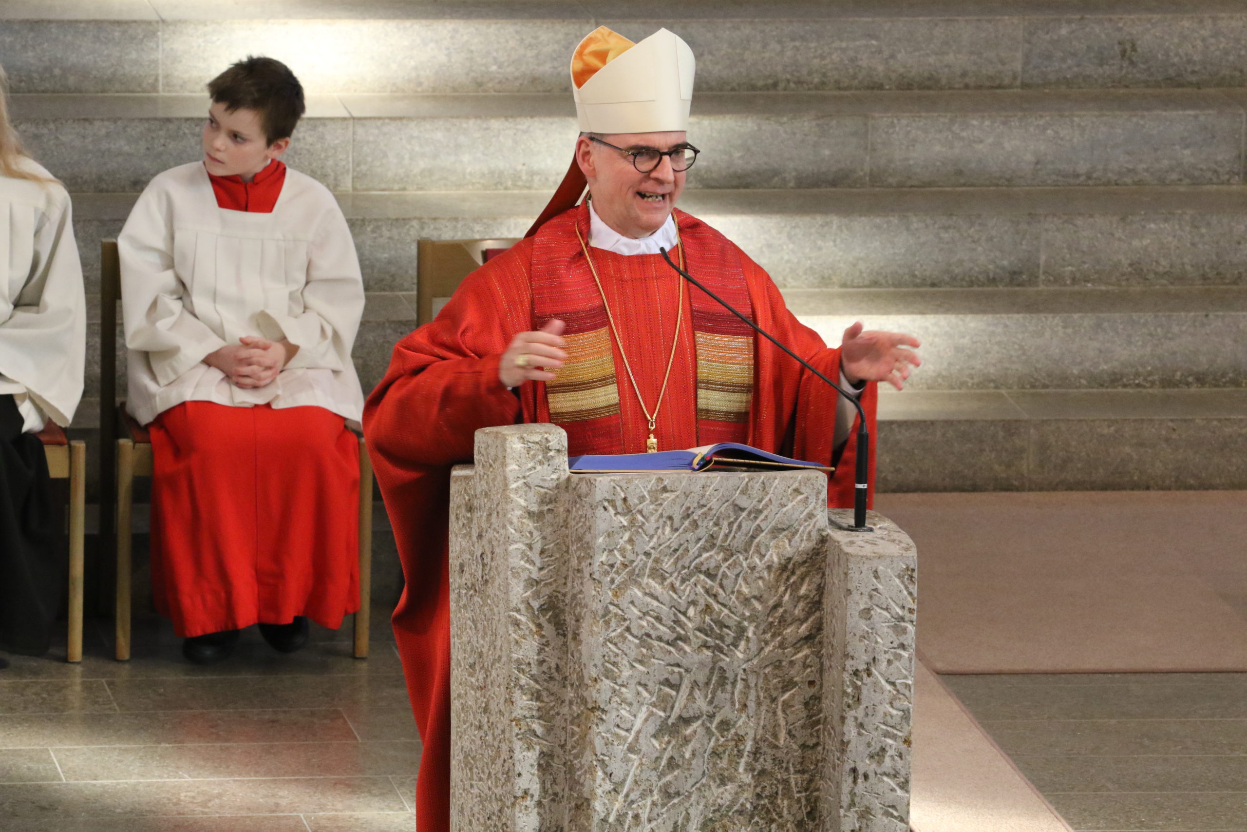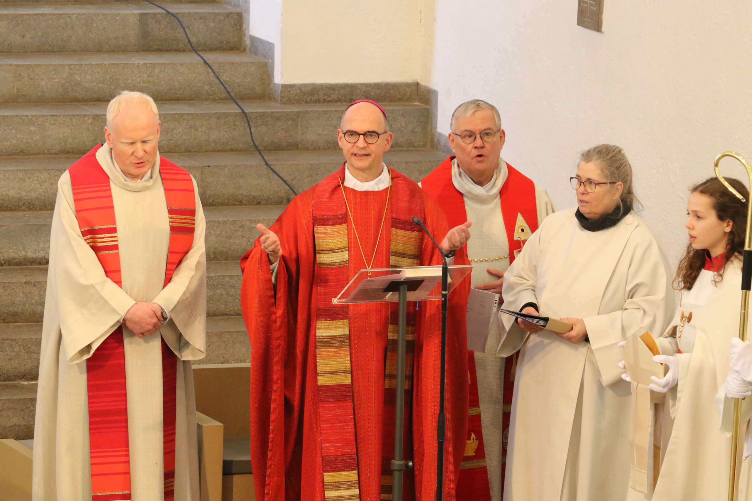 Die schwungvolle musikalische Gestaltung übernahm die Band Himmelwärts und ein gemischter Chor aus den drei Pfarreien unter der Leitung von Hendrik Frank. Ministranten aus allen drei Pfarreien haben den Gottesdienst festlich mitgestaltet. Zwei der Neugefirmten begrüßten und verabschiedeten gekonnt und soverän Bischof Jung und dankten ihm. Die Neugefirmten stellten verschiedene Ergebnisse aus der Vorbereitung vor.