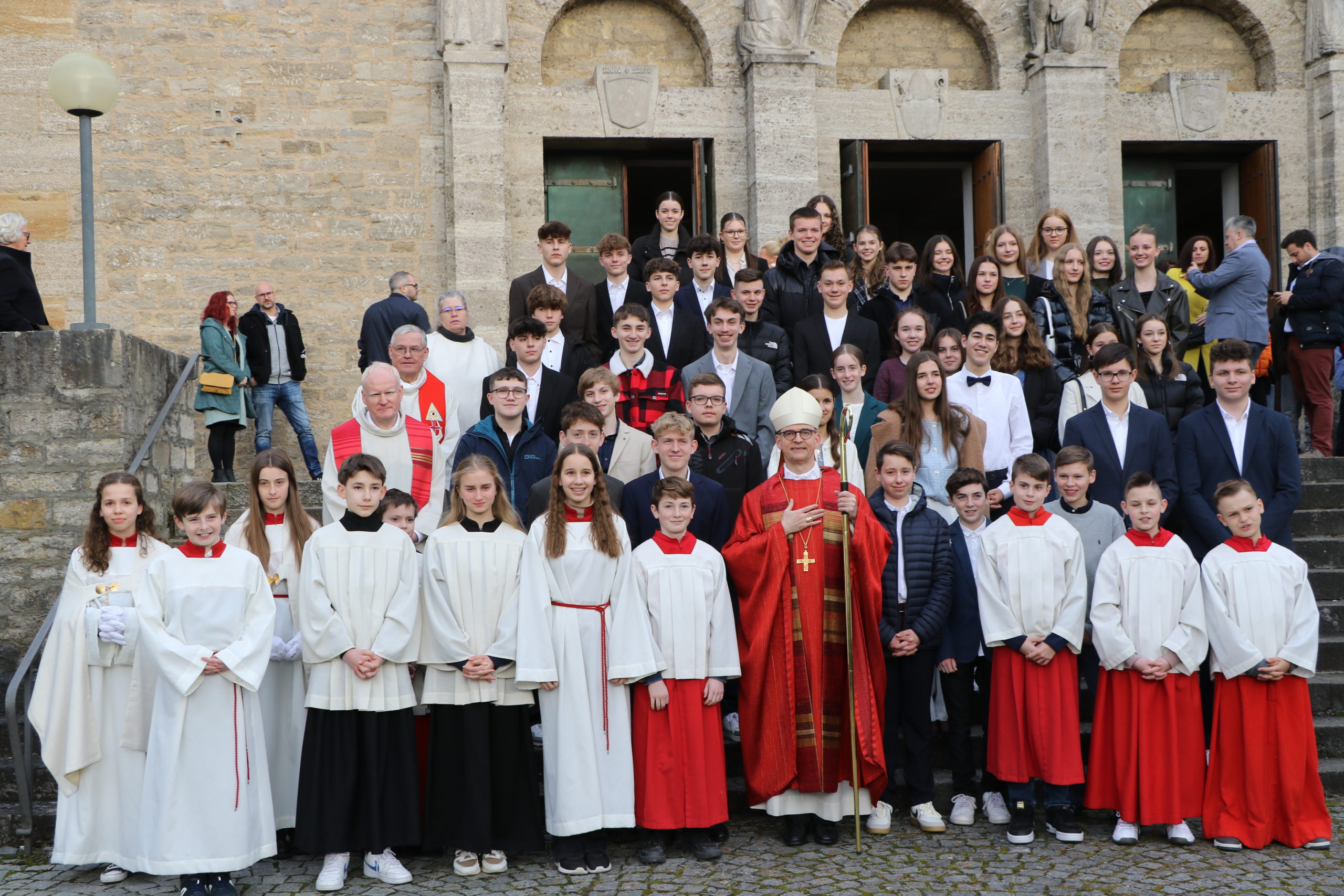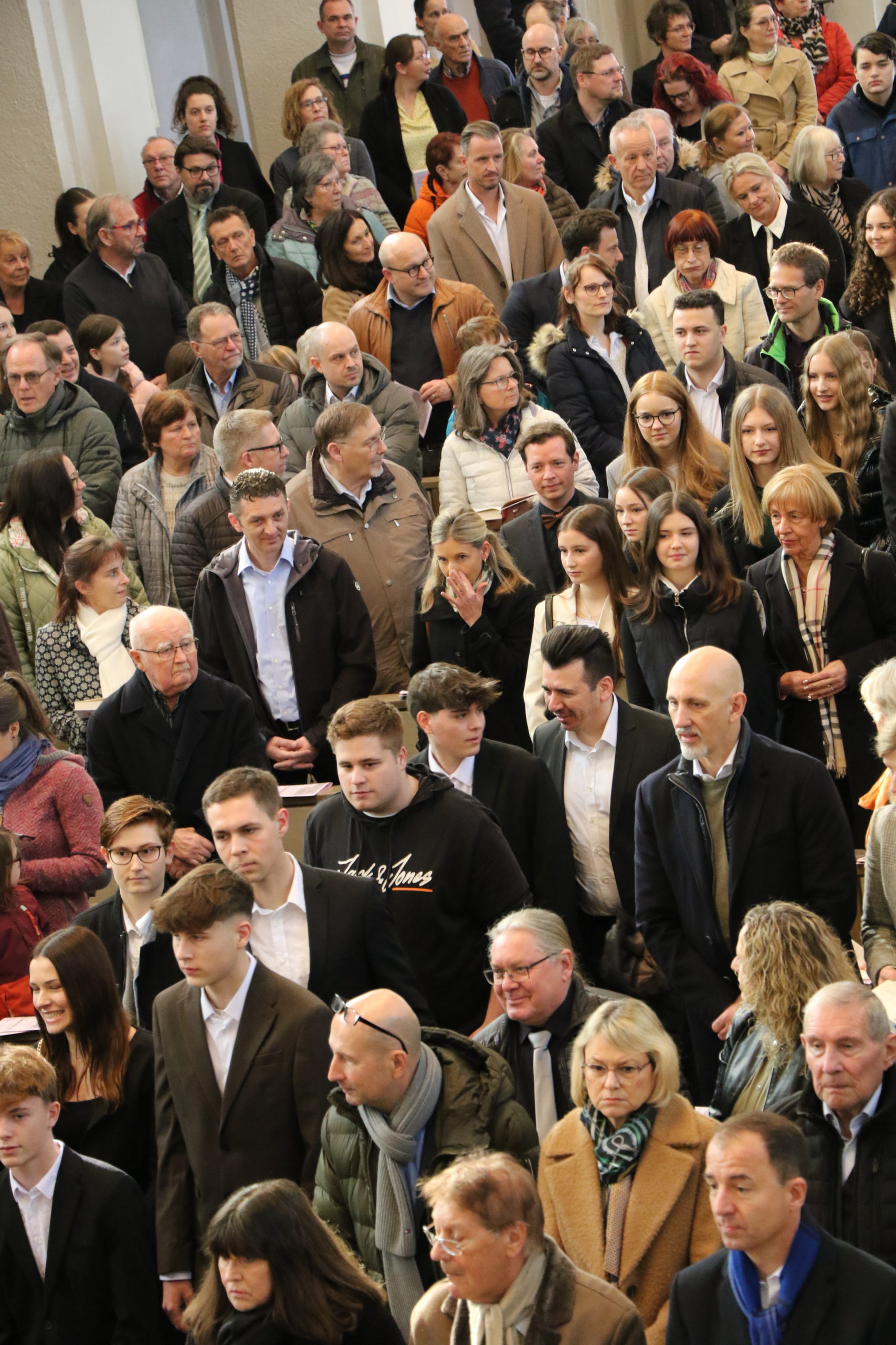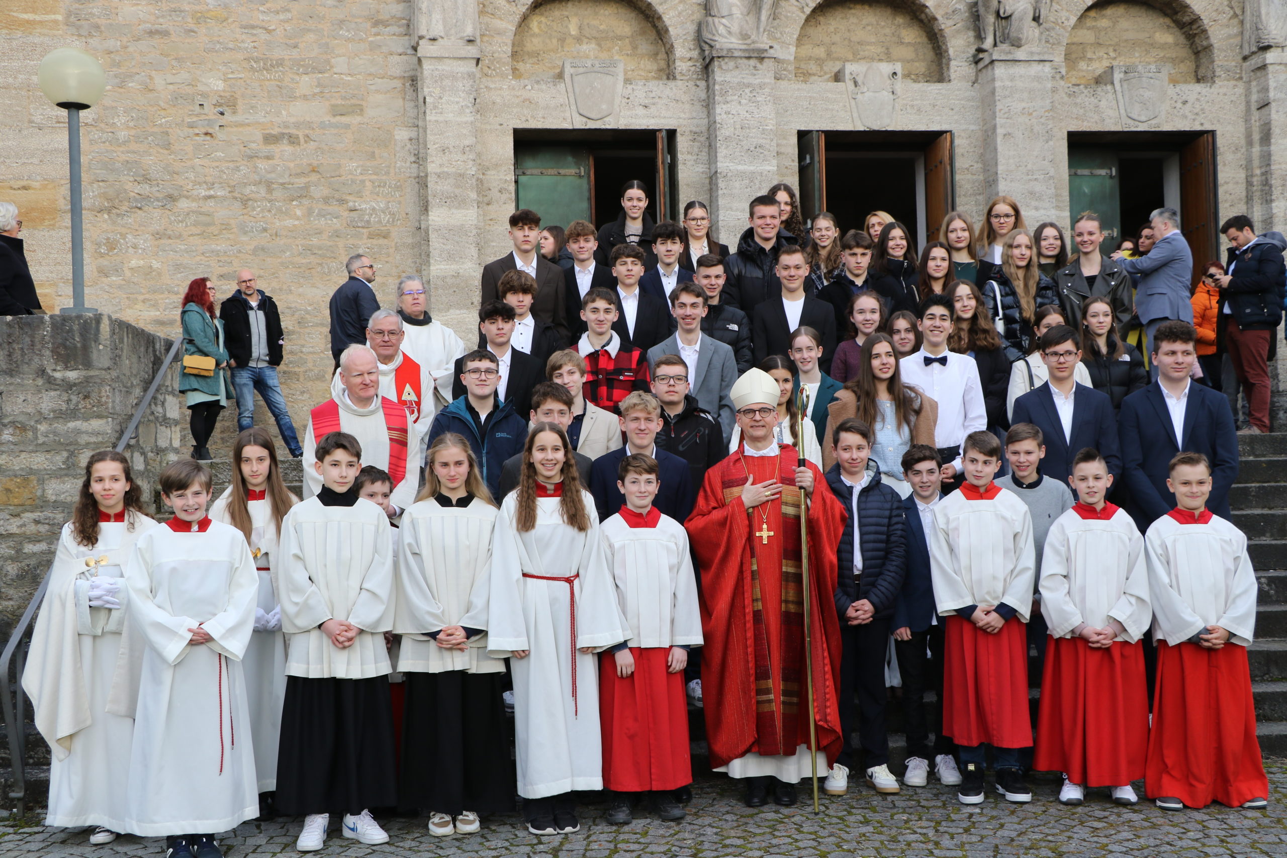 43 Jungen Menschen hat Bischof Franz Jung die Firmung gespendet. Drei weitere sind aus schulischen Gründen in St. Burkard eine Woche früher gegangen und eine wartet noch auf ihre Firmpatin, die im Ausland ist. Diese Firmung wird nachgeholt. Damit können wir stolz sein auf 47 junge Leute, die aufmerksam den Gottesdienst verfolgt und sich zu ihrem Glauben bekannt haben.