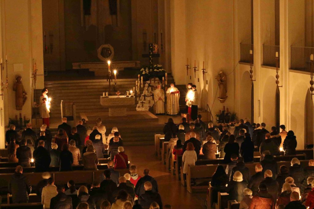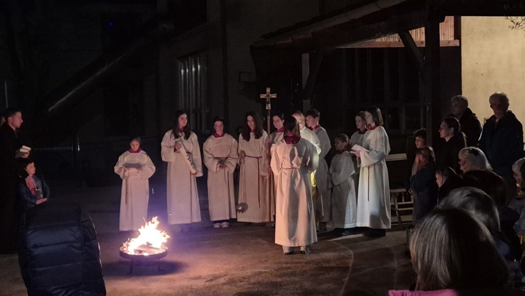 Osternacht in St. Laurentius mit dem Feuer der Pfadis und dem Vokalensemble Heidingsfeld stimmungsvoll umgesetzt