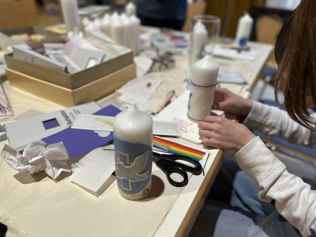 Und dann gab es am Karsamstag noch die 2. Heidingsfelder Kirchenwerkstatt mit Gesang, Spielen, Waffeln, Kerzen gestalten und Bibelarbeit.