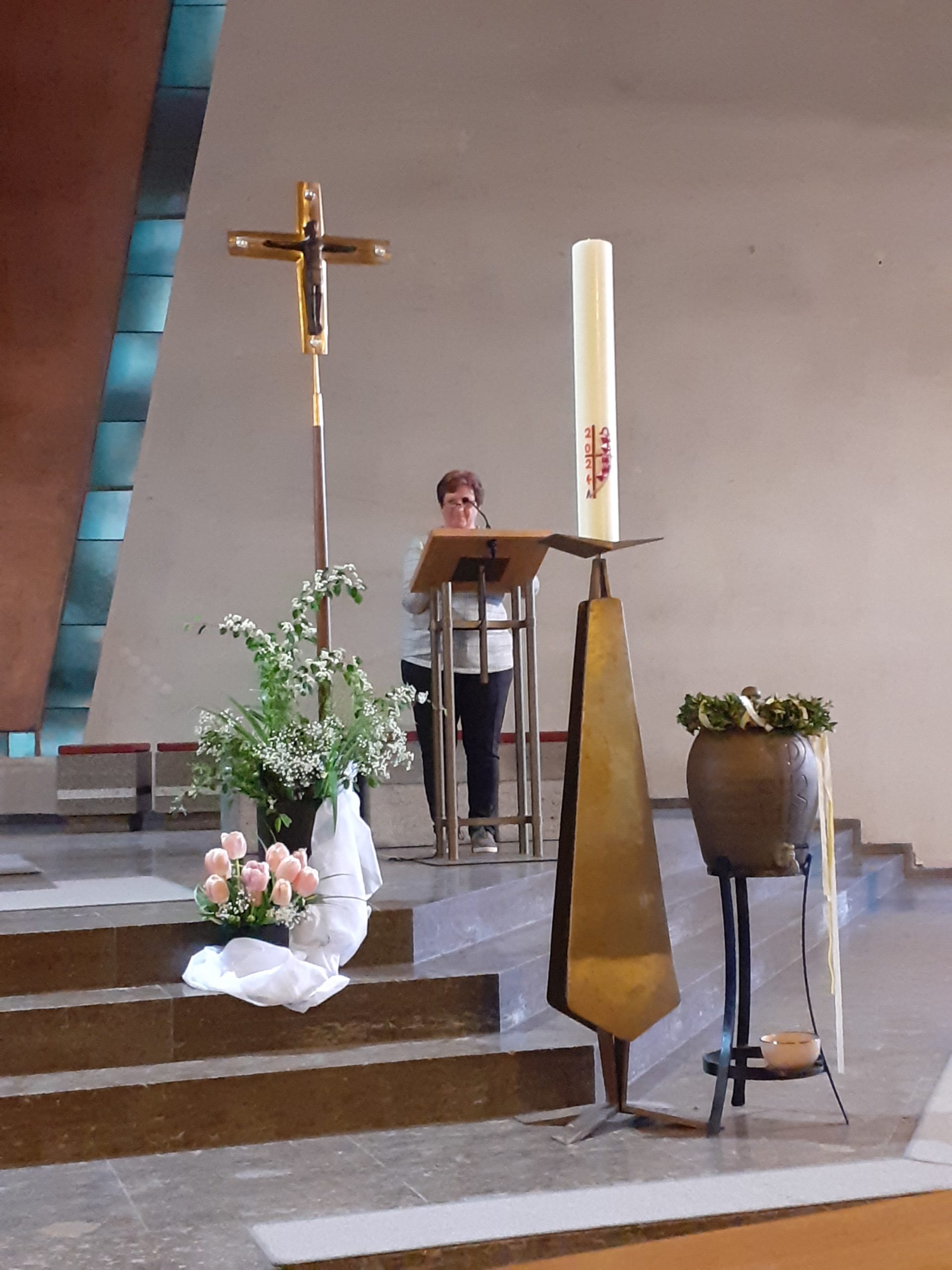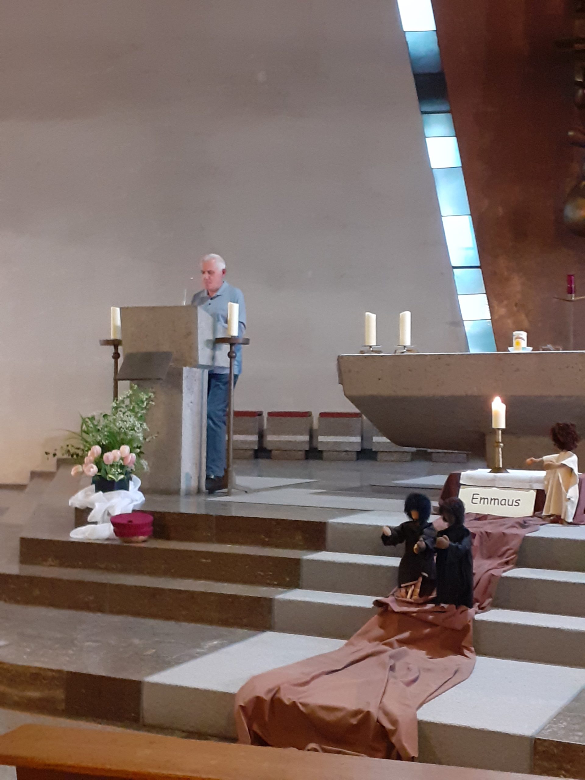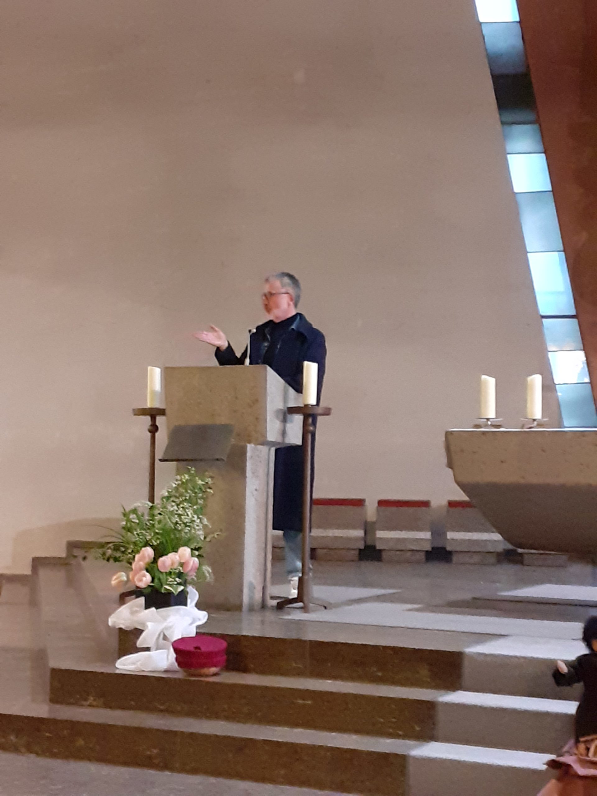 Gegen Ende brachte Pfarrer Klaus Hösterey noch den folgenden Gedanken ein: die Kirche „Zur Heiligen Familie“ sei eine Zeltkirche und ein Zelt stehe immer auch für Abbruch und Aufbruch. Ein Zelt werde an einer Stelle abgebaut, an einer anderen Stelle aber wieder aufgebaut. Dies sei mit Angst, aber auch mit Chancen verbunden.