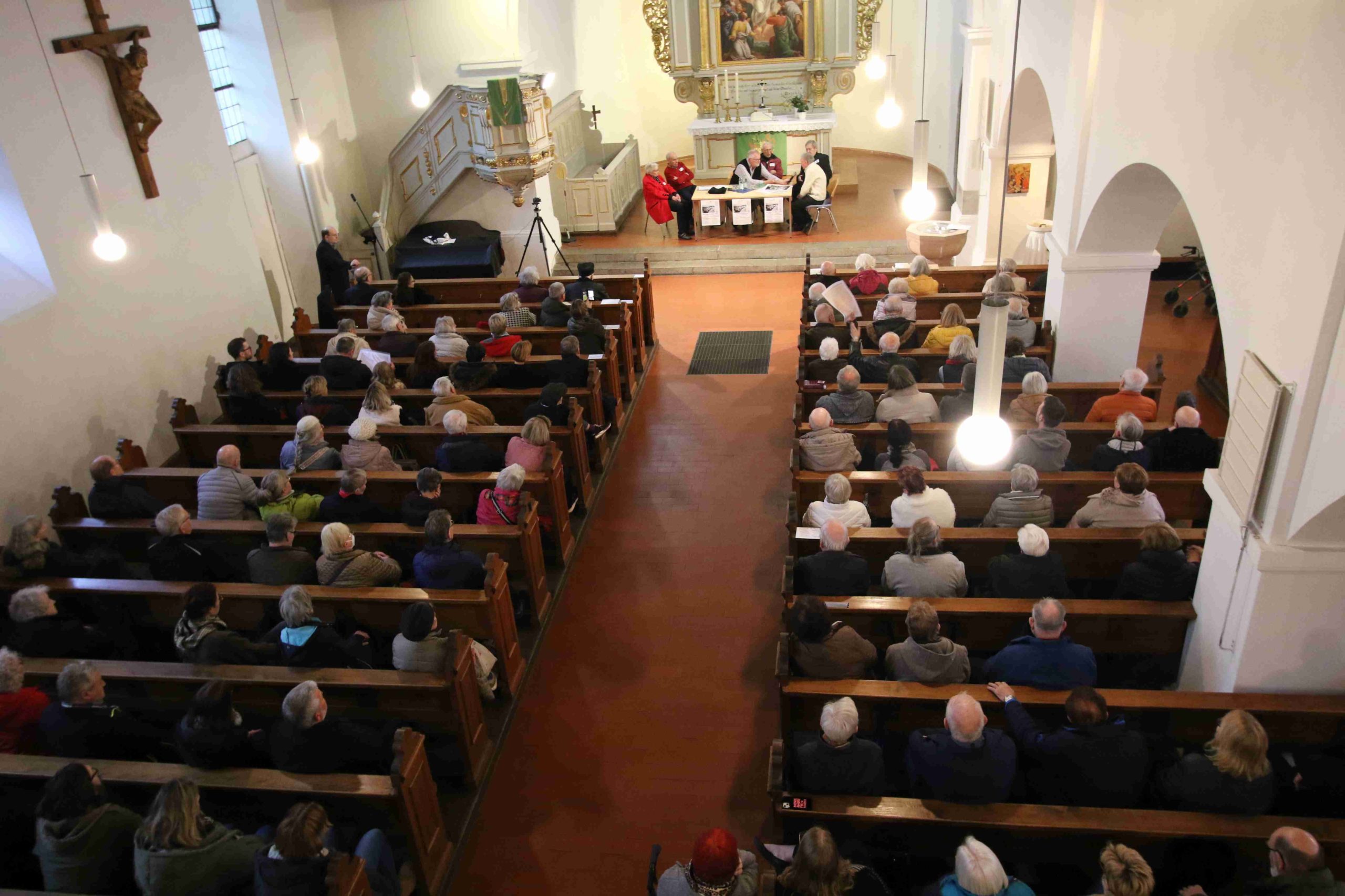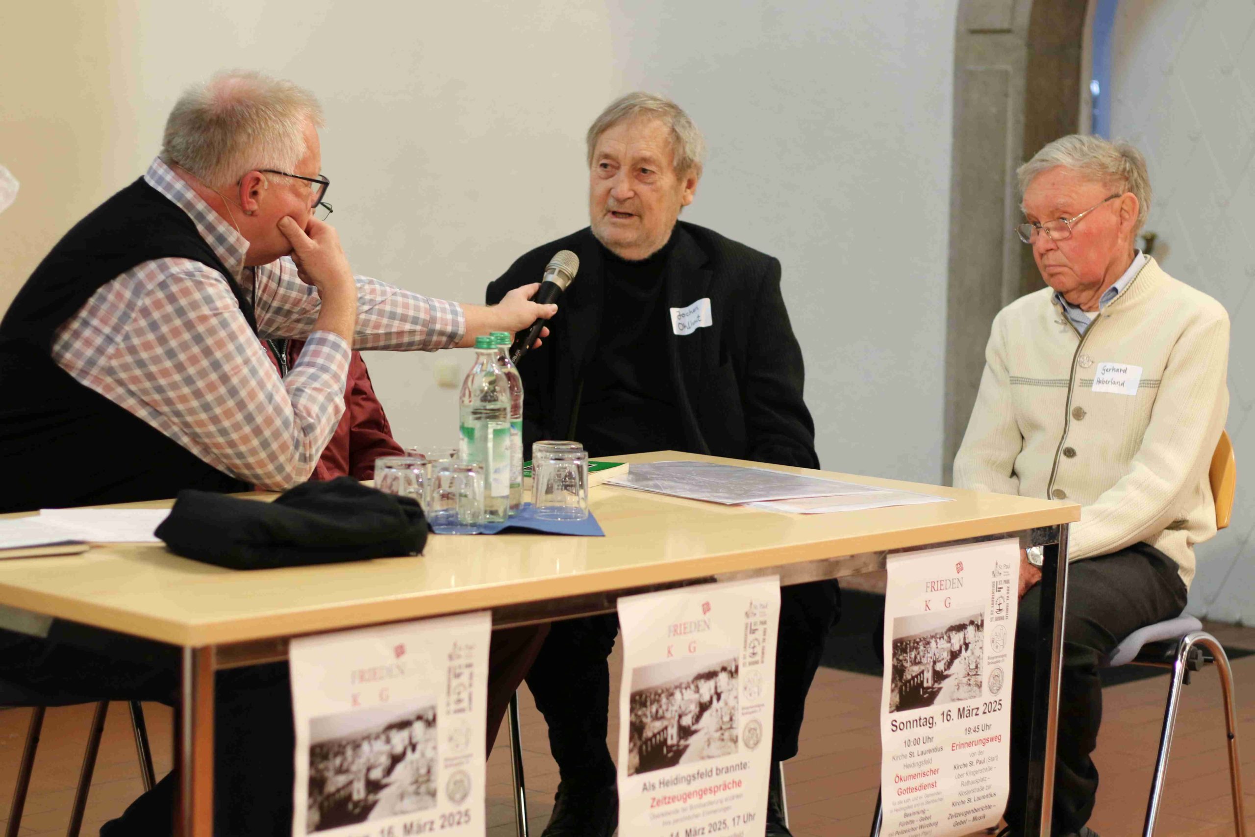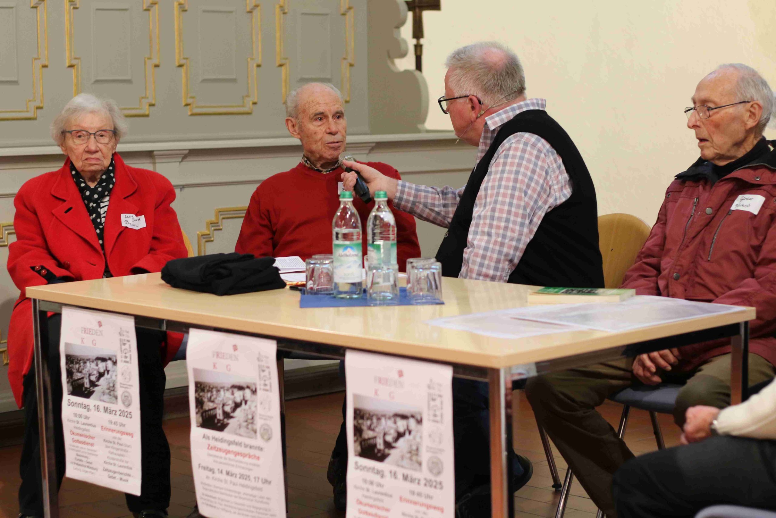 Bilder von den Gesprächen mit den Zeitzeugen der Zerstörung Heidingsfelds am 16. März1945. in der evangelischen Kirche St. Paul in Heidingsfeld am 14.03.2025. anlässlich des Gedenkens an die Zerstörung Heidingsfelds vor 80 Jahren.